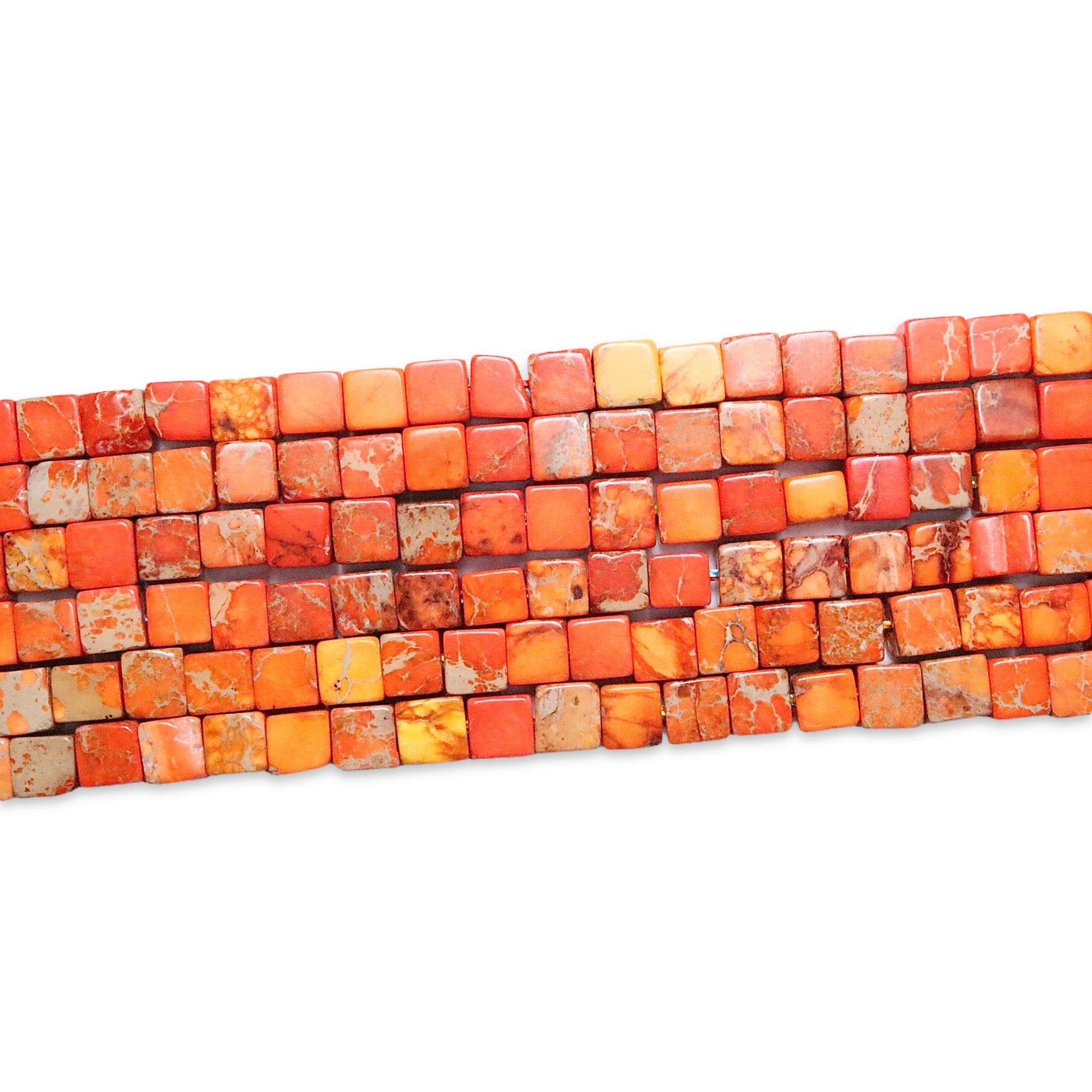Fil de perles carrées Jaspe impérial orange chauffé