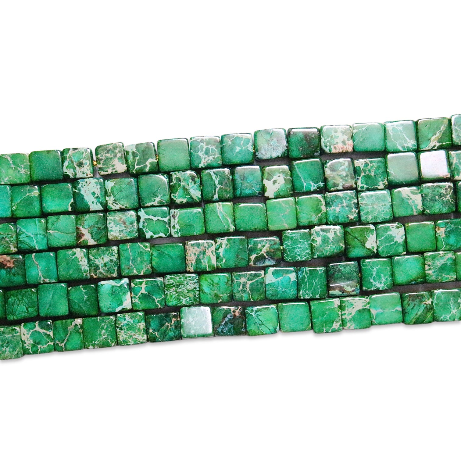 Fil de perles carrées Jaspe impérial vert chauffé