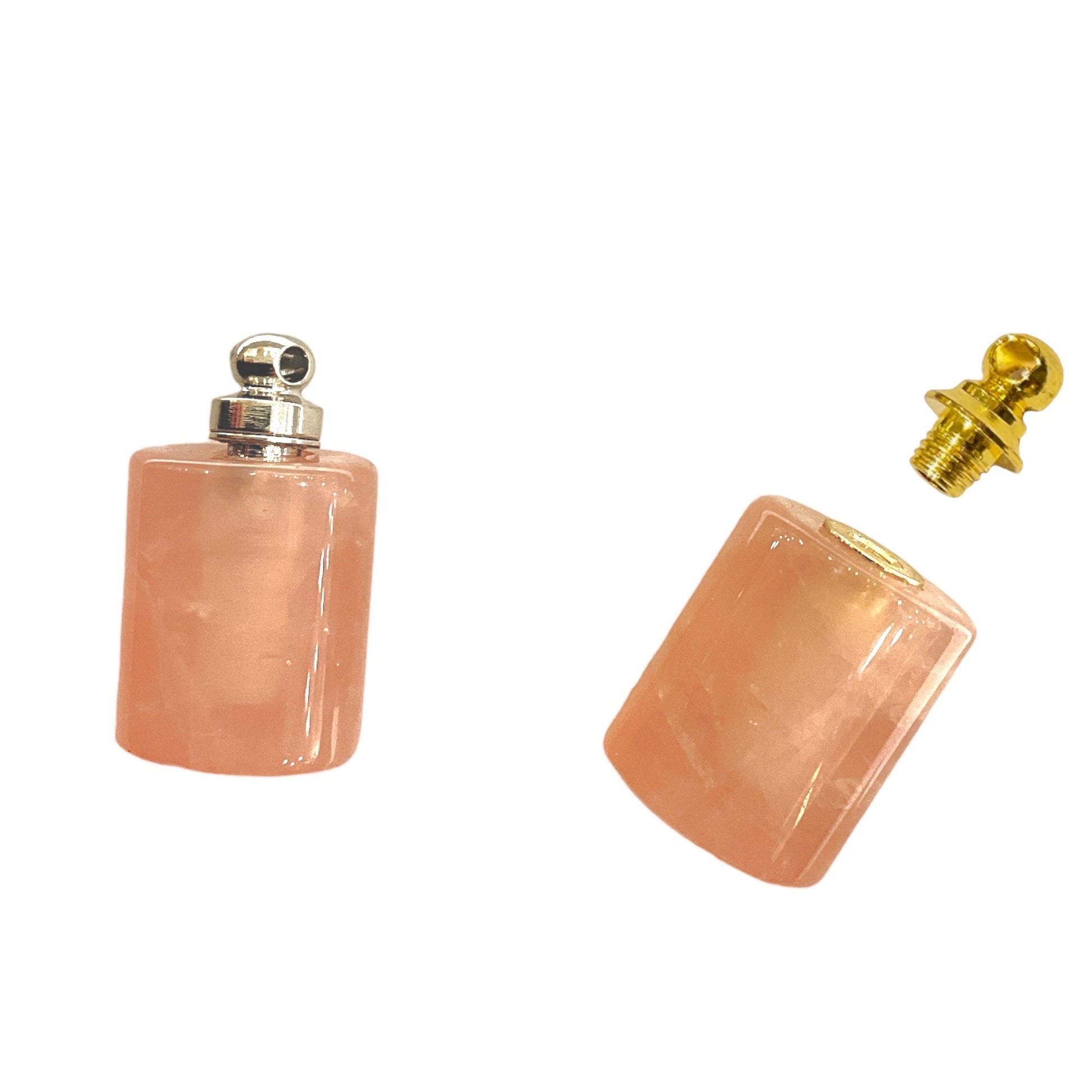 Pendentif fiole en Quartz Rose en acier forme rectangle pour huile essentielle/parfum